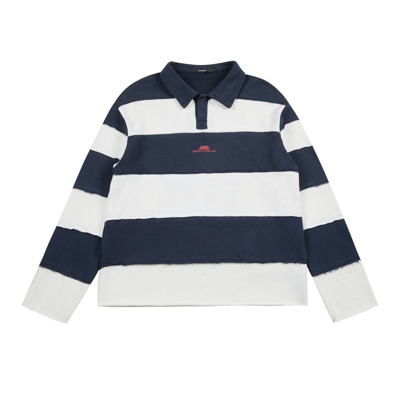 Casual Printed Long Sleeve Polo Collar Hoodie with Patchwork Design