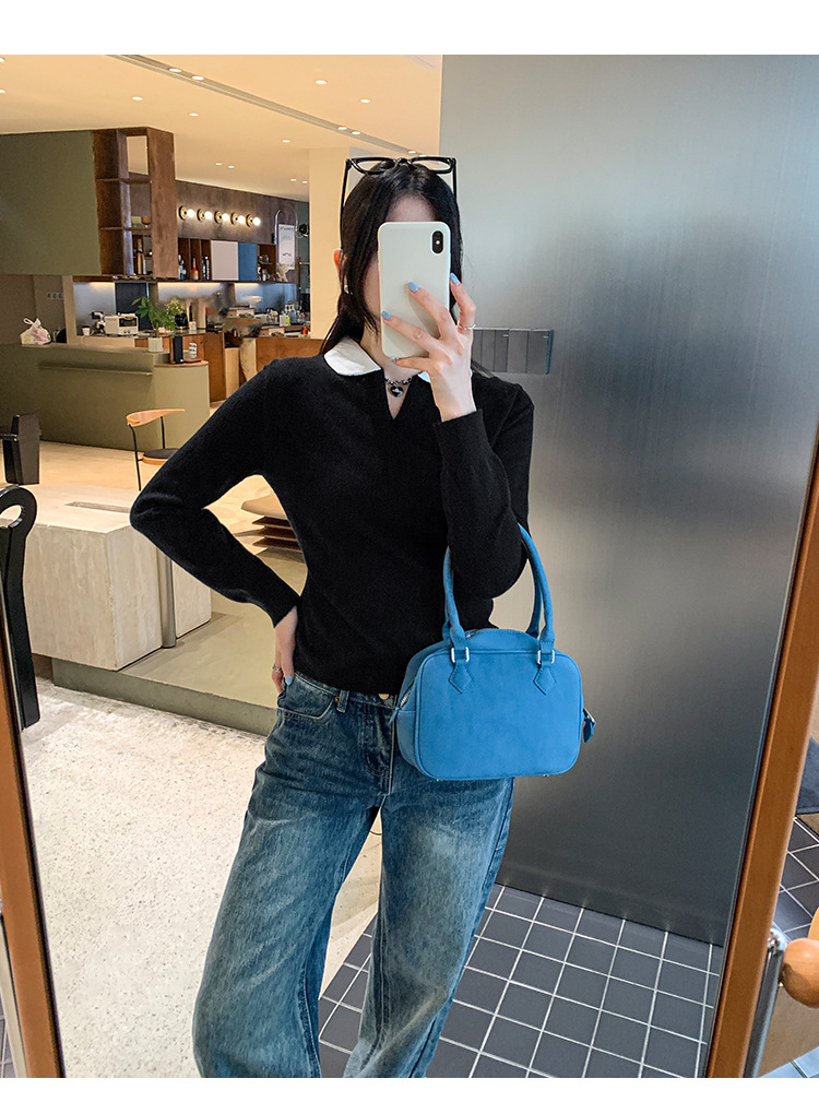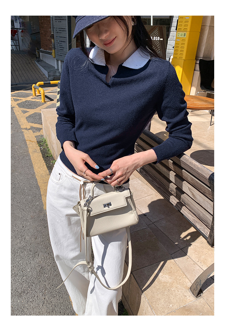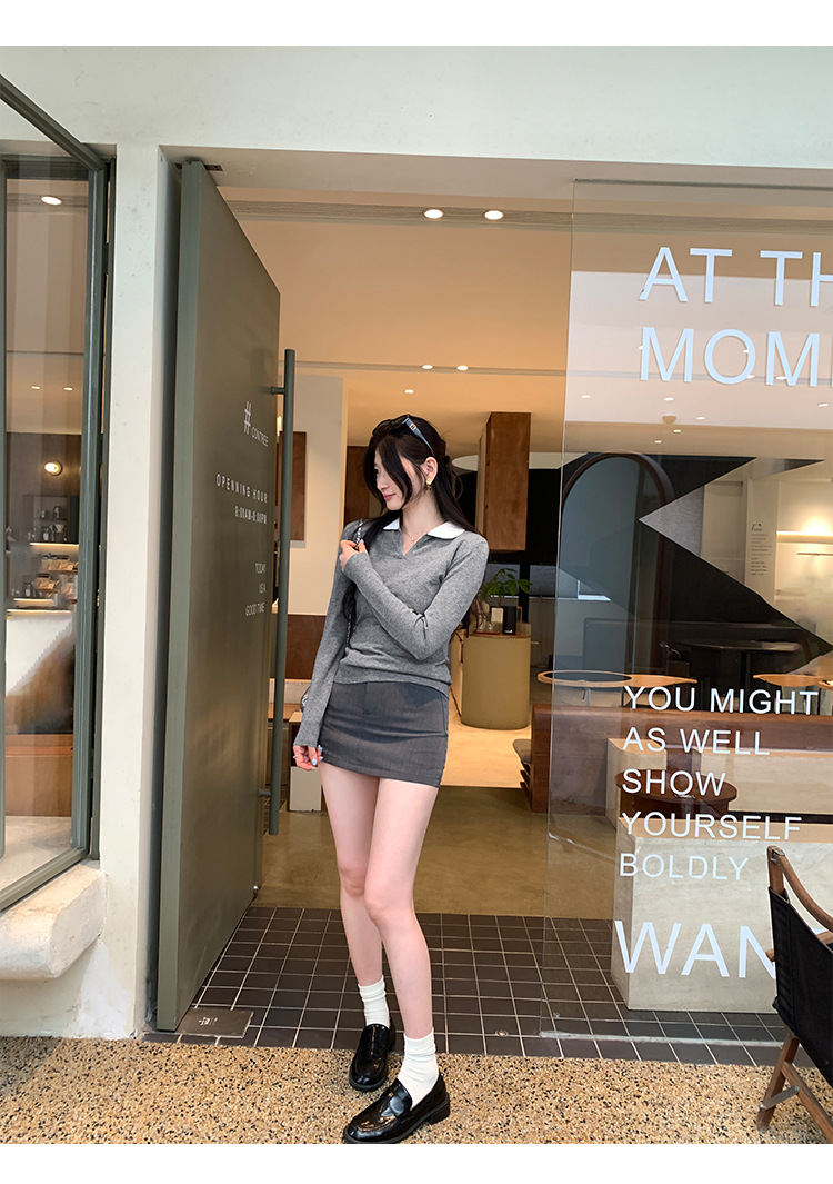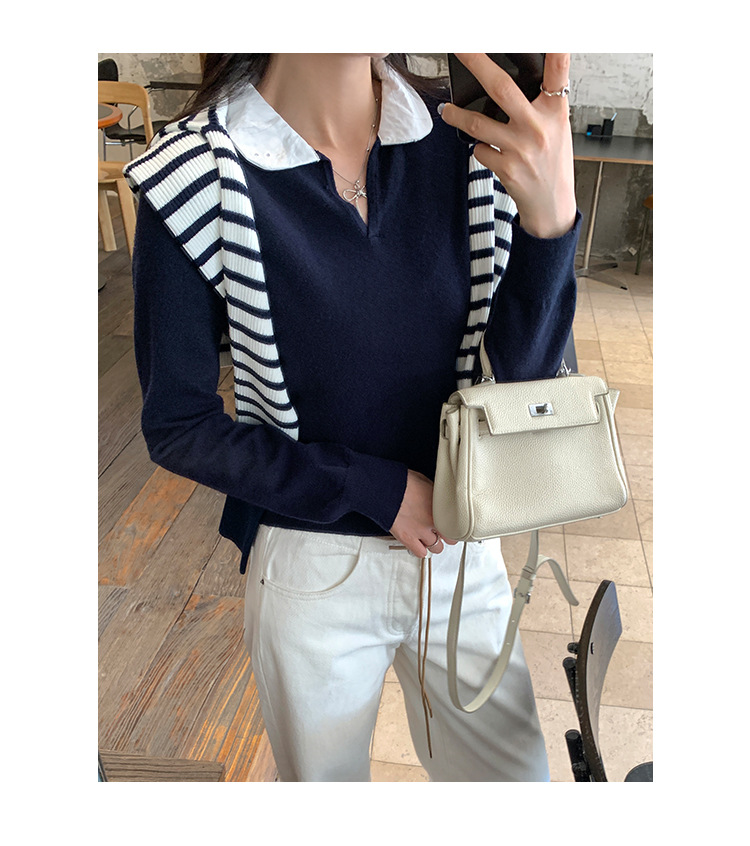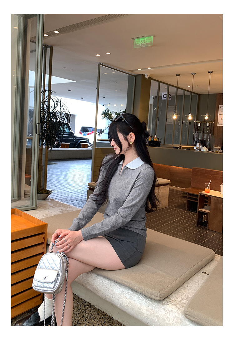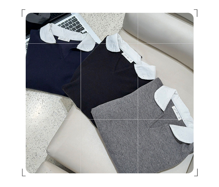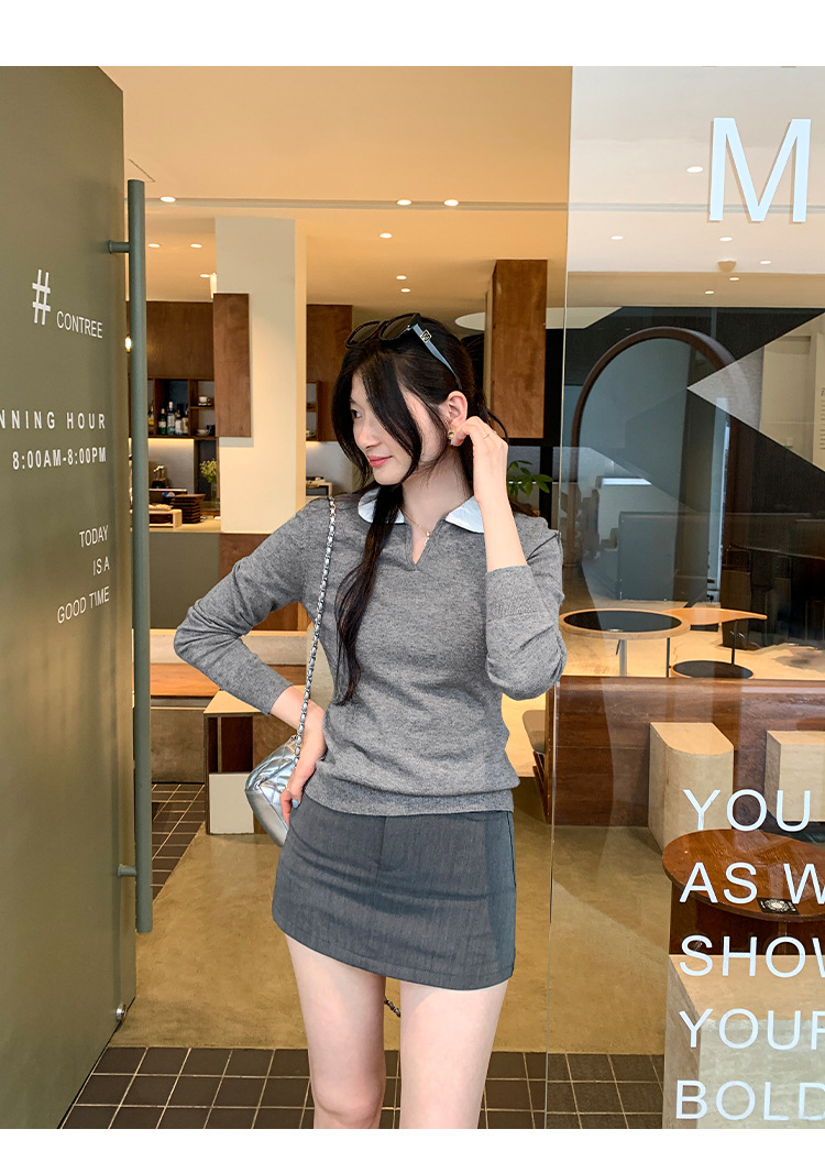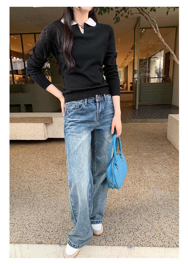 College Color-block Polo Neck Knit Top for Women