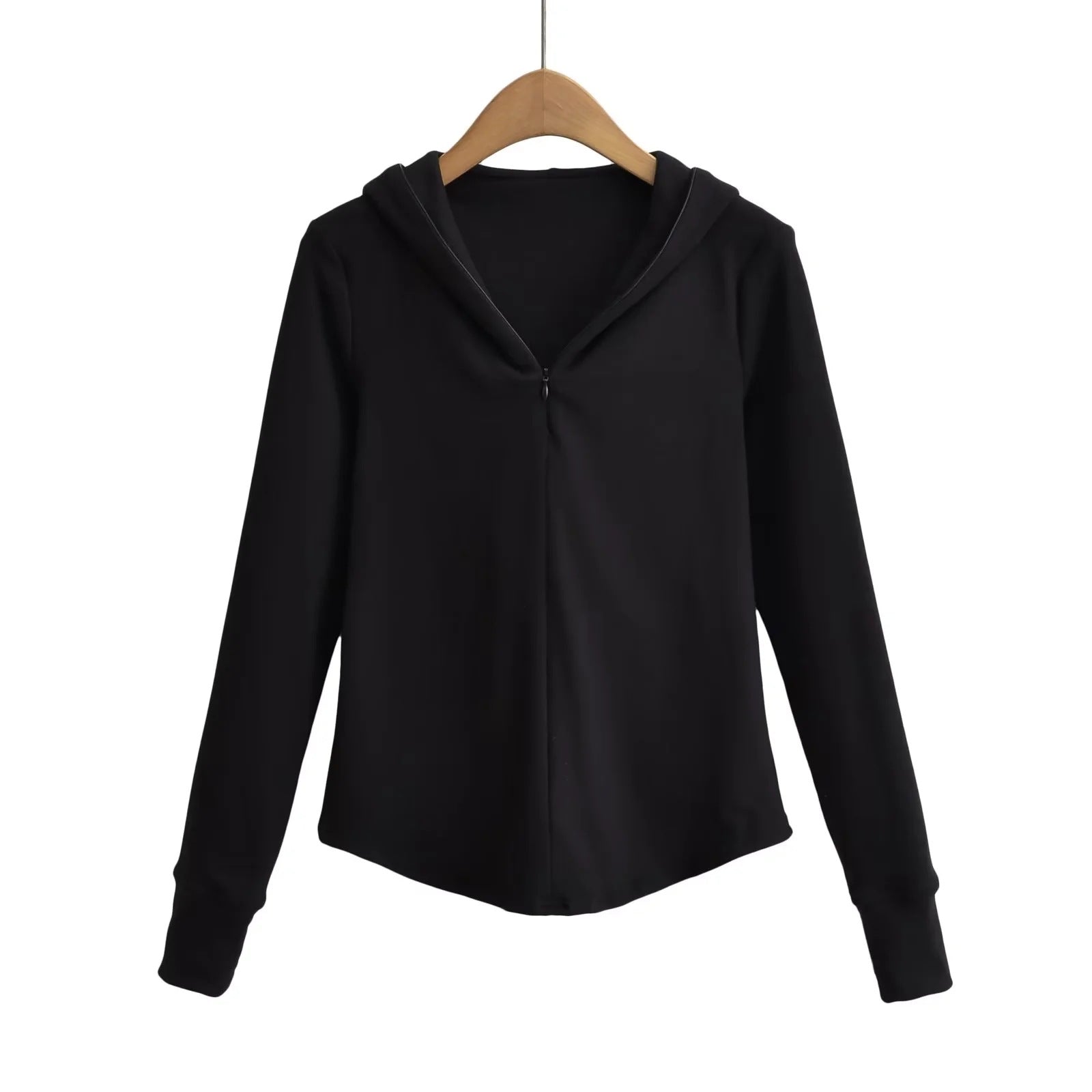 Slim solid color long sleeved zipper hooded sweatshirt